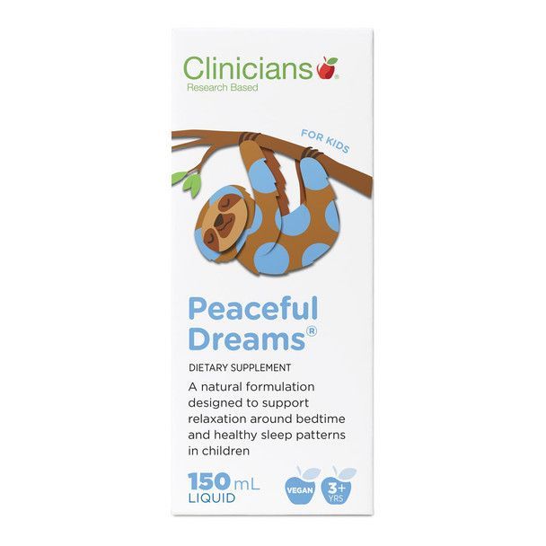 Clinicians Kids Peaceful Dreams is a natural formulation designed to support relaxation around bedtime and healthy sleep patterns in children.